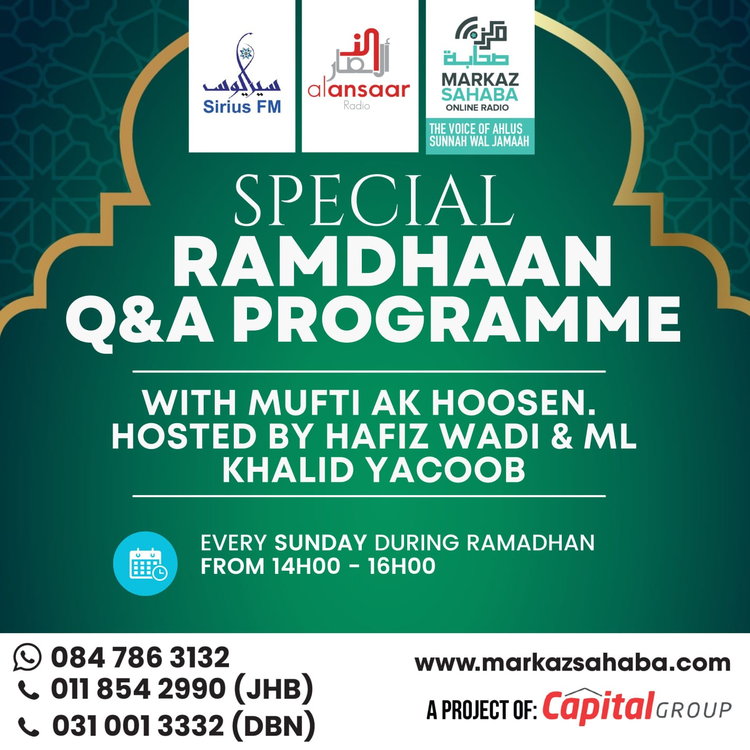 Hosted by Hafiz Wadee & Mufti AK Hoosen answering all your Questions
